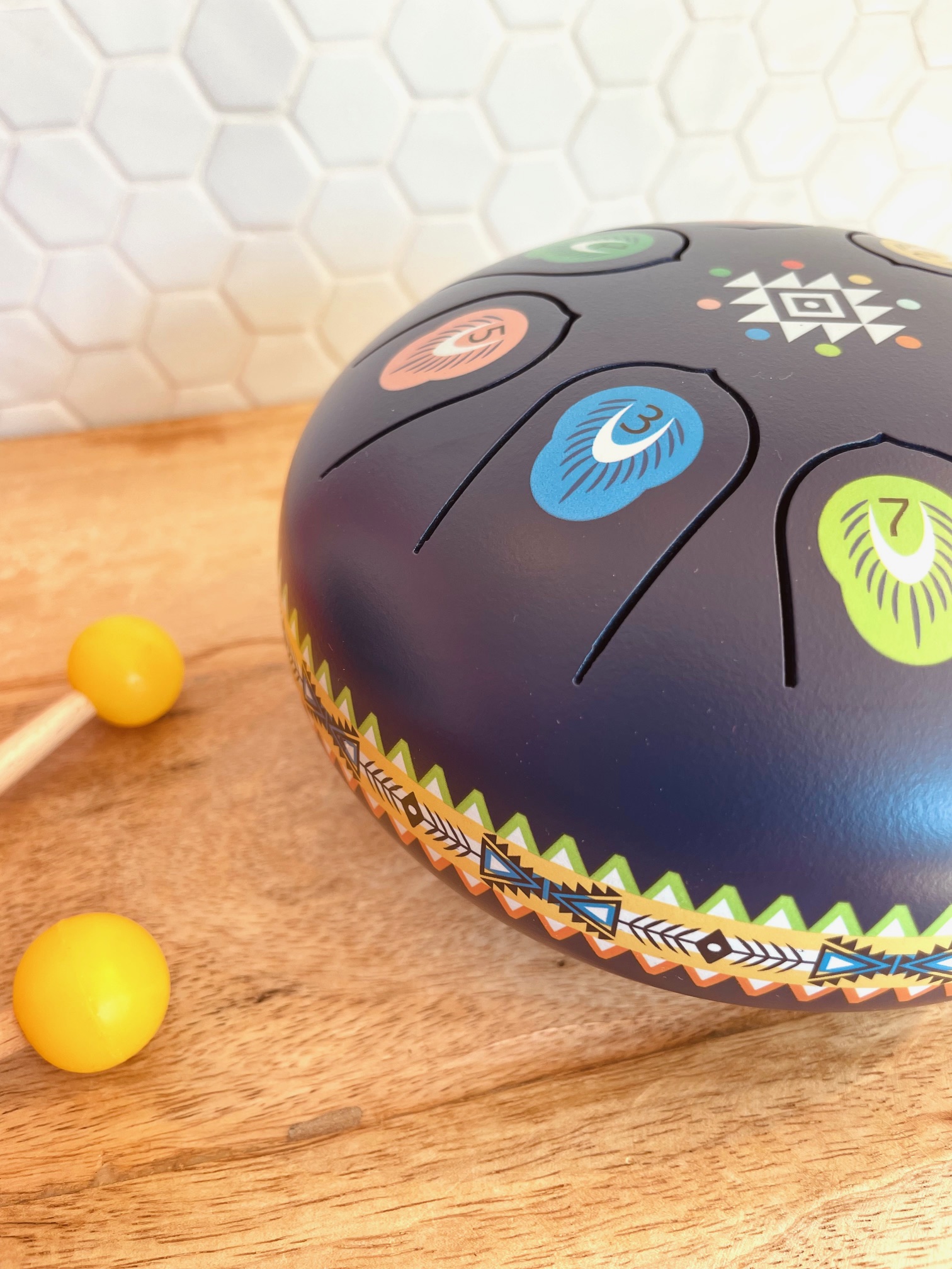 Tambour métallique avec 8 sons différents.