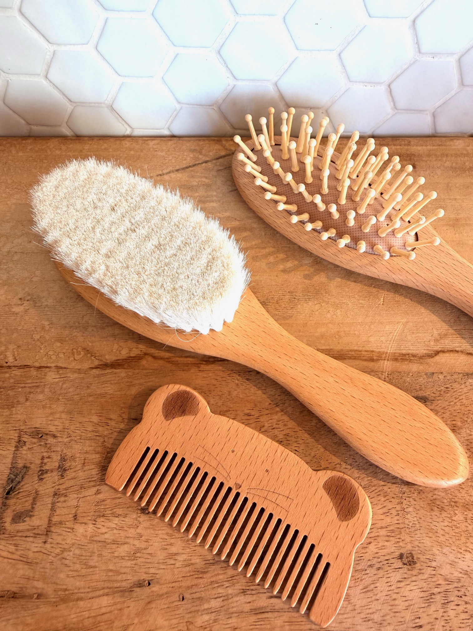 Kit brosse et peigne en bois.